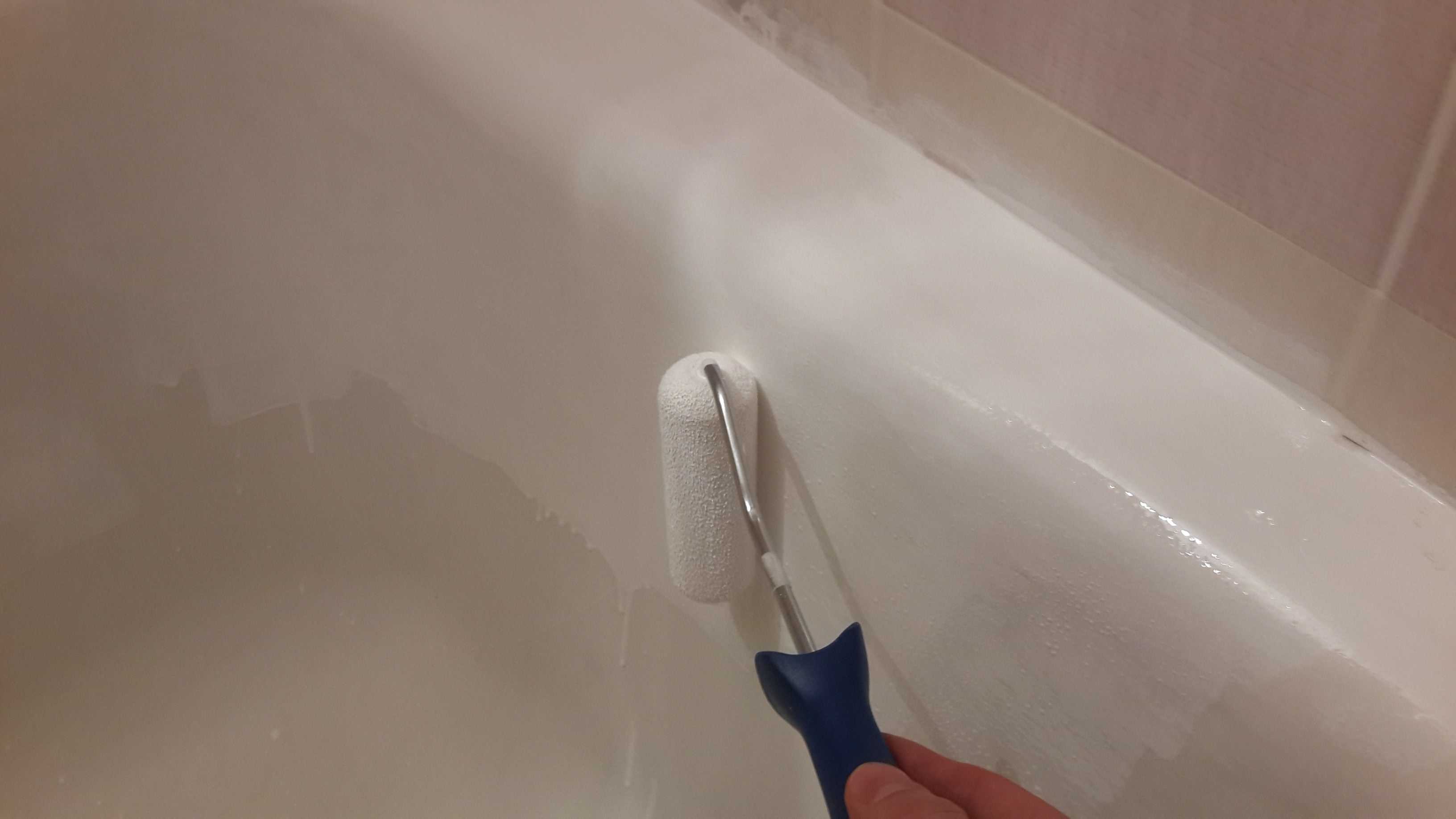 Après avoir utilisé le premier lot de peinture, le pinceau doit être coupé avec des ciseaux et après cela, il est de nouveau prêt à l'emploi. Lorsque toute la baignoire est peinte, vous devez fermer la porte et quitter la pièce comme ceci pendant plusieurs heures.