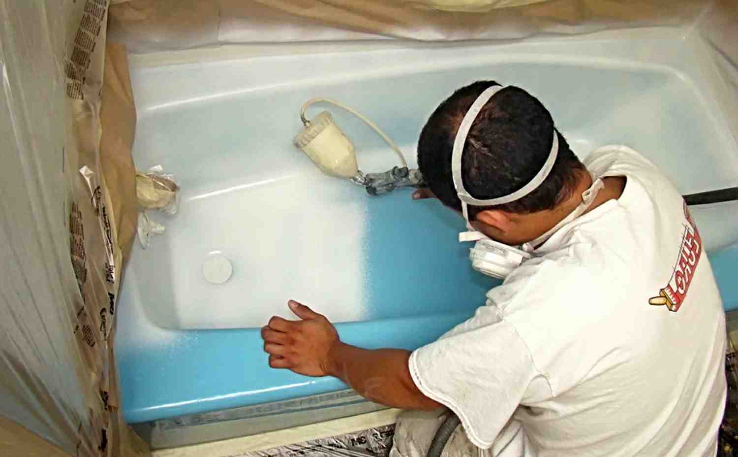 Peindre la salle de bain avec de l'émail de vos propres mains est un processus assez minutieux. Vous ne pouvez pas vous précipiter ici et vous devez utiliser un équipement de protection individuelle.