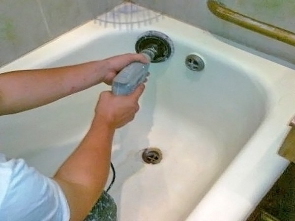 - Nous laissons le mélange de détergent et d'eau pendant dix minutes, puis nous lavons le tout et remplissons la baignoire d'eau à ras bord. Nous attendons vingt minutes, vidons l'eau. Traitement de démarrage abrasif.