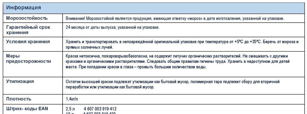 - Résistance à l'usure humide - moyen (lors du nettoyage avec une éponge humide, la peinture laisse des traces dessus).