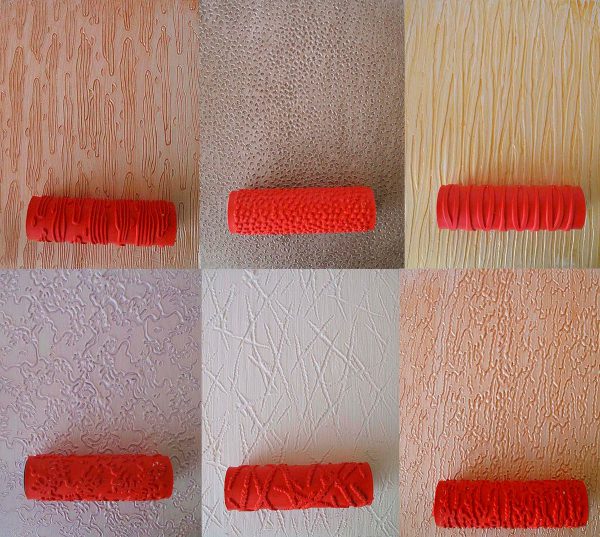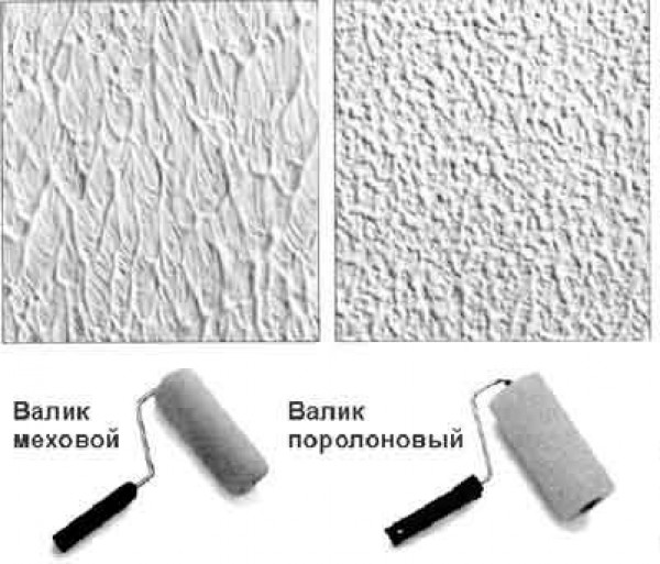 - Roller (voir Rouleaux à peinture: à considérer en détail). Le relief de la future surface dicte l'apparition d'un manteau de fourrure. L'image ci-dessous montre une nette différence entre l'utilisation d'un manteau en mousse et à poil long. Et vous pouvez prendre un rouleau structurel pour peindre les murs et les faire marcher sur la surface après avoir appliqué une couche uniforme de peinture. Mais il n'a pas besoin d'être très mince.