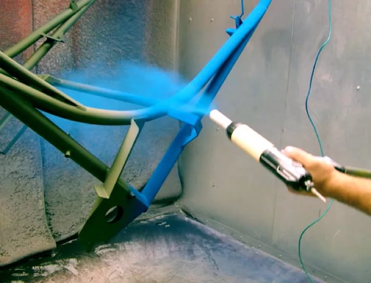 En conditions industrielles (le plus souvent) résistant à la chaleur peinture en poudre. Il est appliqué à l'aide d'un équipement spécial par pulvérisation électrostatique ou tribostatique. Après cela, la fusion et la polymérisation de la peinture ont lieu dans des chambres de polymérisation spéciales.