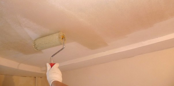 Attention: Avant de peindre, le plafond est à nouveau apprêté pour éliminer la poussière de la surface du plafond et assurer une bonne adhérence des matériaux.