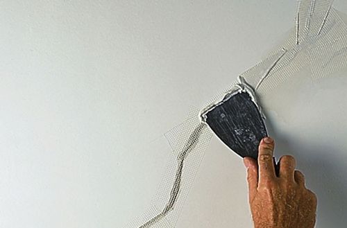- Les fissures doivent être approfondies sur toute la longueur, doivent être apprêtées et mastic après séchage. Les grandes fissures sont mieux renforcées avec un ruban auto-adhésif spécial - serpyanka. À l'avenir, cela empêchera la réapparition de fissures. S'il y a des irrégularités saillantes, elles peuvent être renversées avec un marteau, un marteau ou tout autre outil improvisé.
