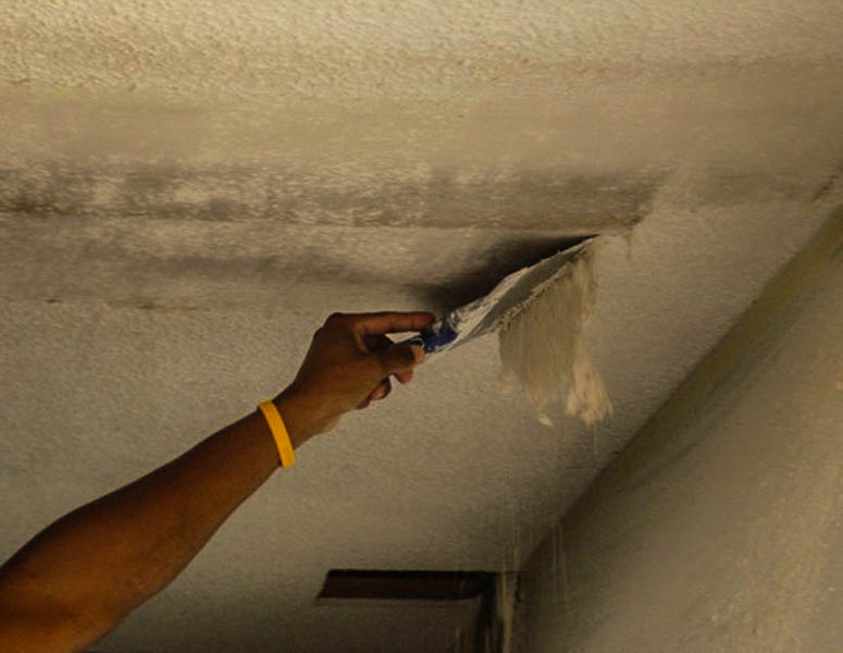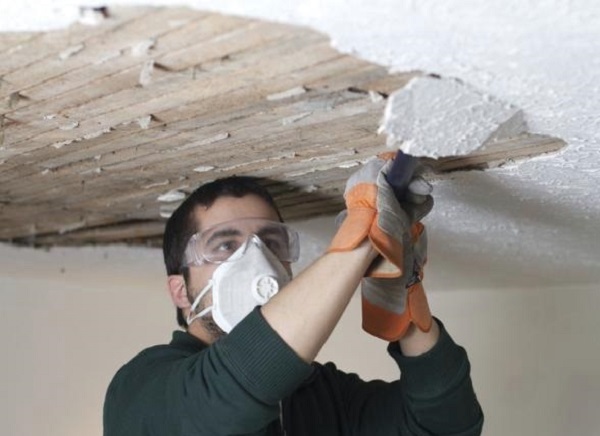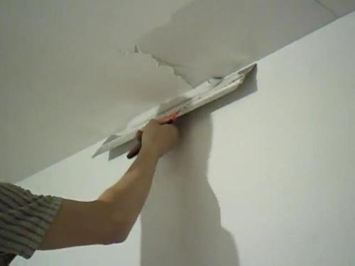| Retrait du plâtre et des revêtements précédents | À l'aide d'une spatule en acier, il est nécessaire de nettoyer le plafond de l'ancien enduit ou plâtre (voirComment nettoyer le mur de plâtre sans problèmes). Si le revêtement du plafond présente des traces de moisissure ou de moisissure, le nettoyage doit être effectué jusqu'au sol en béton. |