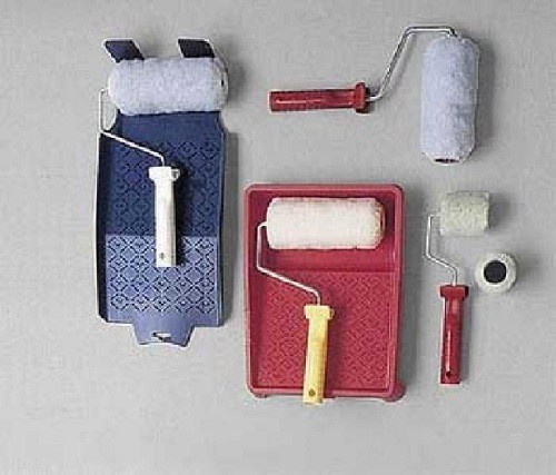 - Cuvette. Cet appareil est un récipient avec une zone ondulée pour rouler le rouleau, de la peinture y est versée. Vous pouvez vous passer de cet outil. Mais le coût de l'appareil en plastique n'est pas important et vous ne devez pas économiser sur cet appareil.