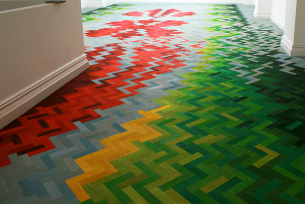 - Peinture au sol minutieuse et complexe en plusieurs couleurs