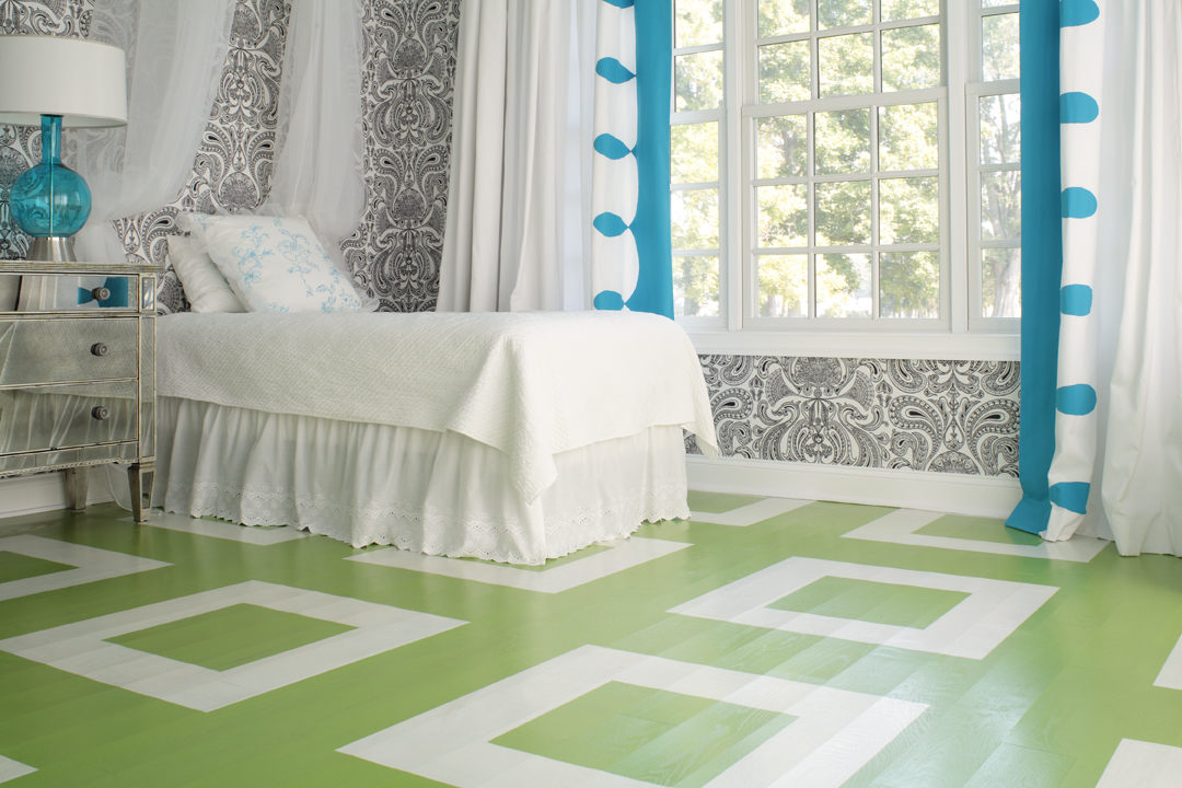 - Donner l'originalité de la surface de l'ancien plancher: utiliser des pochoirs en carton bricolage