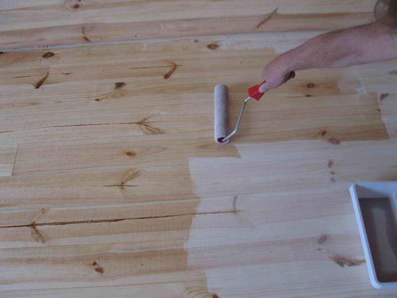 Si les peintures et vernis n'ont pas d'antiseptiques dans leur composition, il est nécessaire de traiter la surface avec eux avant de peindre. De plus, une couche d'apprêt et de mastic peut être appliquée au préalable sur le plancher en bois.