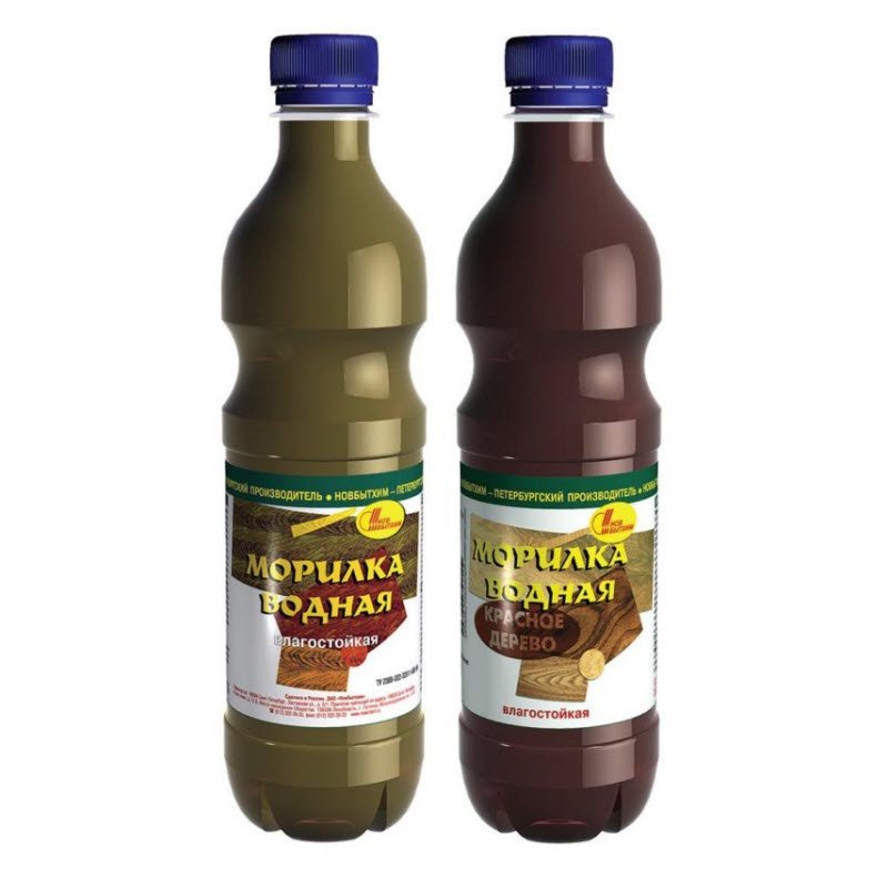 Selon la composition de la teinture, il existe: alcool, huile, eau, acrylique, cire, nitromoril. Disponible sous forme liquide et en poudre.