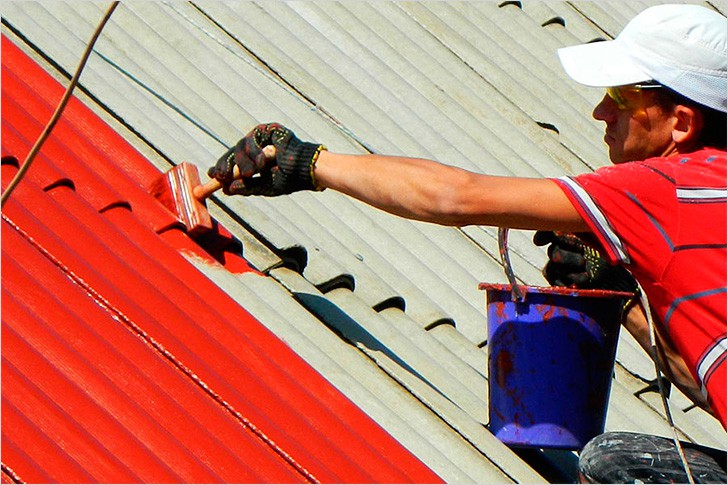 - Pour faire face à un certain nombre de ces problèmes, en règle générale, une peinture en temps opportun du toit est utile. Une application similaire de composés colorants peut être effectuée de vos propres mains. La couche qui se forme lors de la peinture protège le ciment amiante des effets du vent, prévient son altération et ne lui permet pas de subir une destruction biologique.