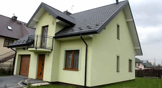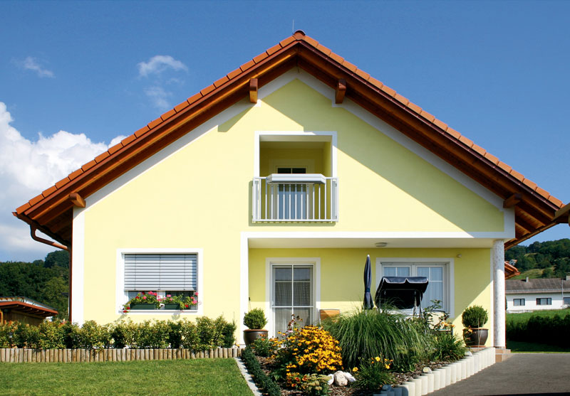 - Lors de la peinture de la façade, choisissez une peinture claire, aux couleurs pastel. De telles nuances conviennent harmonieusement à une image holistique, et dans ce cas, il sera plus facile de choisir la couleur du toit. Pour éviter la monotonie des couleurs, utilisez plusieurs nuances de la couleur utilisée.