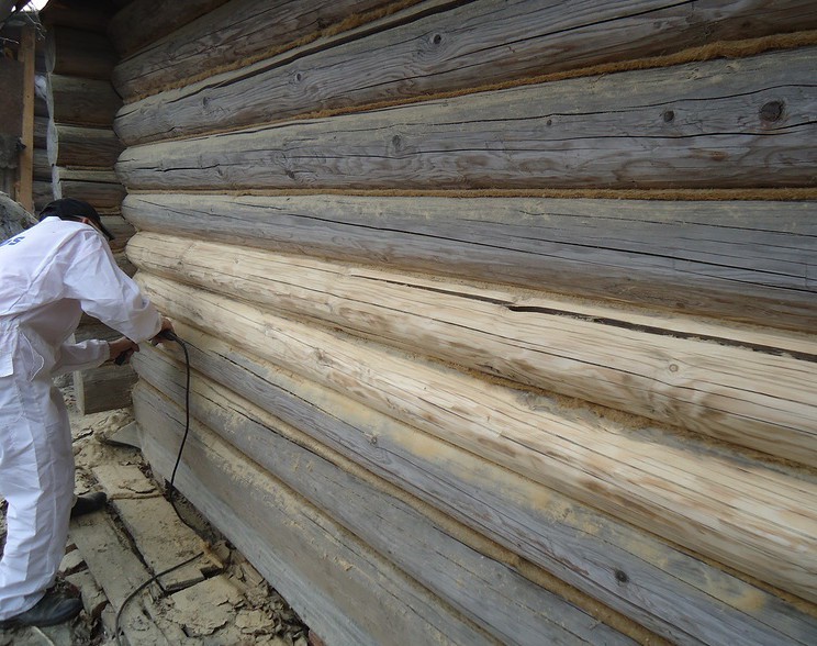 - Comparé à d'autres types de substrats, le bois a une structure assez poreuse. Respectivement, consommation de peinture sur un mur en rondins, ce sera un ordre de grandeur plus élevé que, par exemple, sur une surface enduite. Par exemple: en moyenne, la consommation de peinture à l'huile est de 150 à 170 g / m2. Dans le cas du bois, particulièrement mal raboté, ce chiffre passe à 350-380g / m2. En raison du faible coût de la peinture à l'huile, ce n'est pas aussi abordable que lors de l'utilisation des mêmes peintures alkyde.