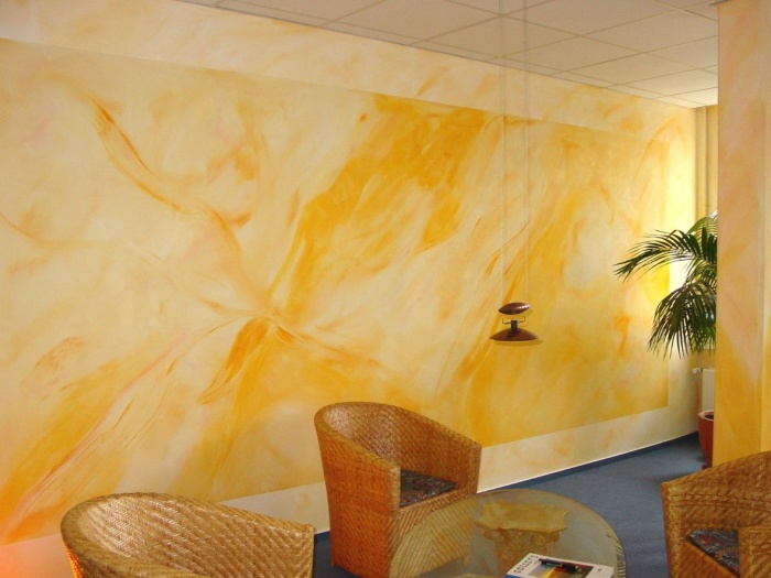 Ce produit peut être attribué à la fois à la catégorie des peintures et du plâtre. Une caractéristique distinctive est la consistance du liquide. L'utilisation de cette variété vous permet de masquer les défauts mineurs des parois, tout en donnant au revêtement une structure et un motif assez intéressants.