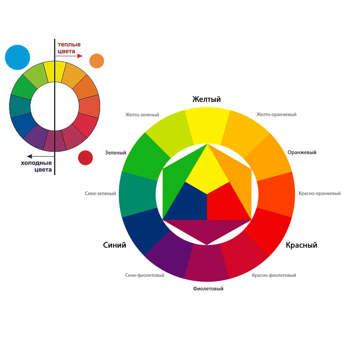 - Le contraste peut consister en deux couleurs supplémentaires sur un cercle ou en trois couleurs formant une figure symétrique ou plusieurs autres options.