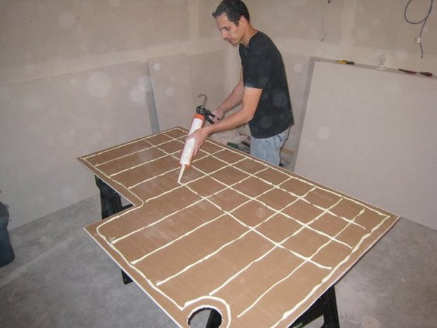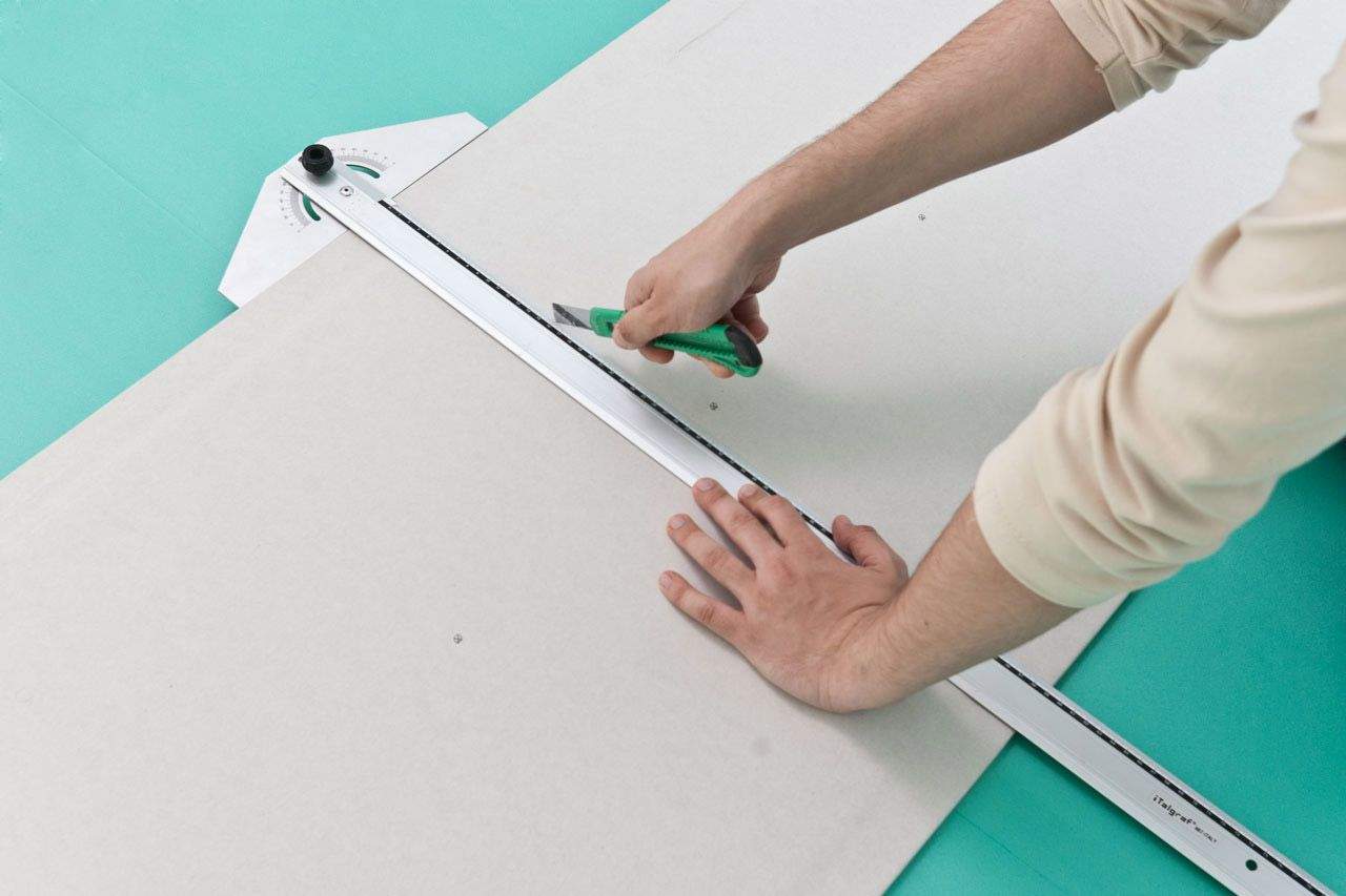 Tout d'abord, nous coupons des plaques de plâtre à la taille dont nous avons besoin. La procédure à suivre est décrite en détail dans l'un des articles de notre site Web, nous ne le répéterons donc pas et nous appliquerons immédiatement de la colle.