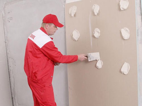 - Adhésif pour cloison sèche, a une mauvaise adhérence sur les surfaces non minérales. Si vos murs sont en pierre ou en béton, il n'y aura pas de problèmes, mais s'ils sont construits en bois, il est préférable de refuser cette méthode d'installation.