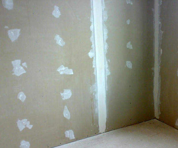 - Le collage des cloisons sèches se produit dans une approchePar conséquent, si une partie de vous a été laissée sans colle, vous l'avez accidentellement manquée ou la pâte n'était pas si abondamment enduite, cela ne fonctionnera pas pour régler la situation.