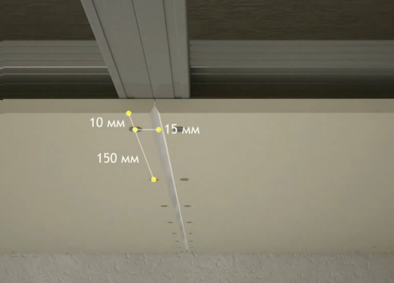 - Lors de la fixation du gyrocock, vissez les vis autotaraudeuses à la même distance les unes des autres - elle ne doit pas dépasser 18 cm. Ne vissez pas non plus la vis autotaraudeuse trop près du bord afin de ne pas couper la feuille à cet endroit.