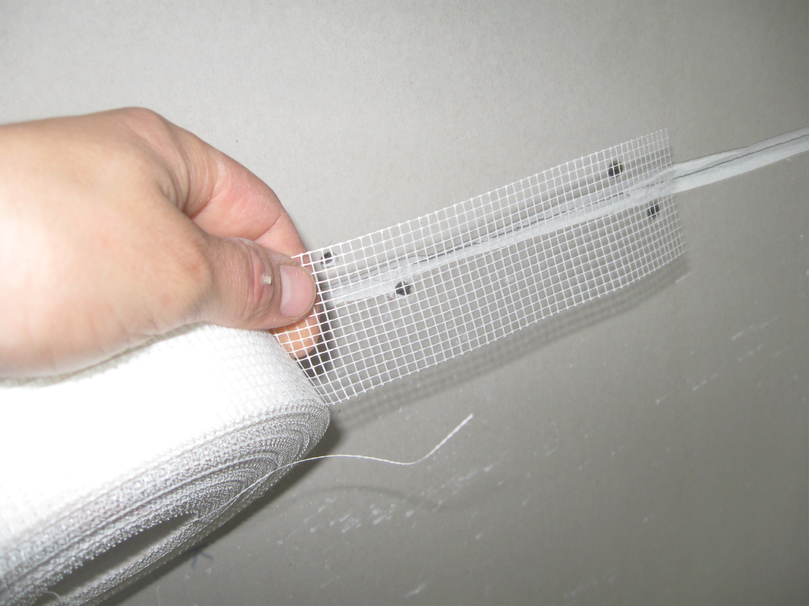 | Collez les coutures avec une serpentine (maille en fibre de verre de renfort auto-adhésive). Il empêchera les fissures lors des fluctuations saisonnières de la température et de l'humidité. Veuillez noter: vous n'avez pas besoin d'une faucille si vous allez coller du vinyle ou calcin, puisque le revêtement final lui-même remplit parfaitement la fonction de renforcement. | |