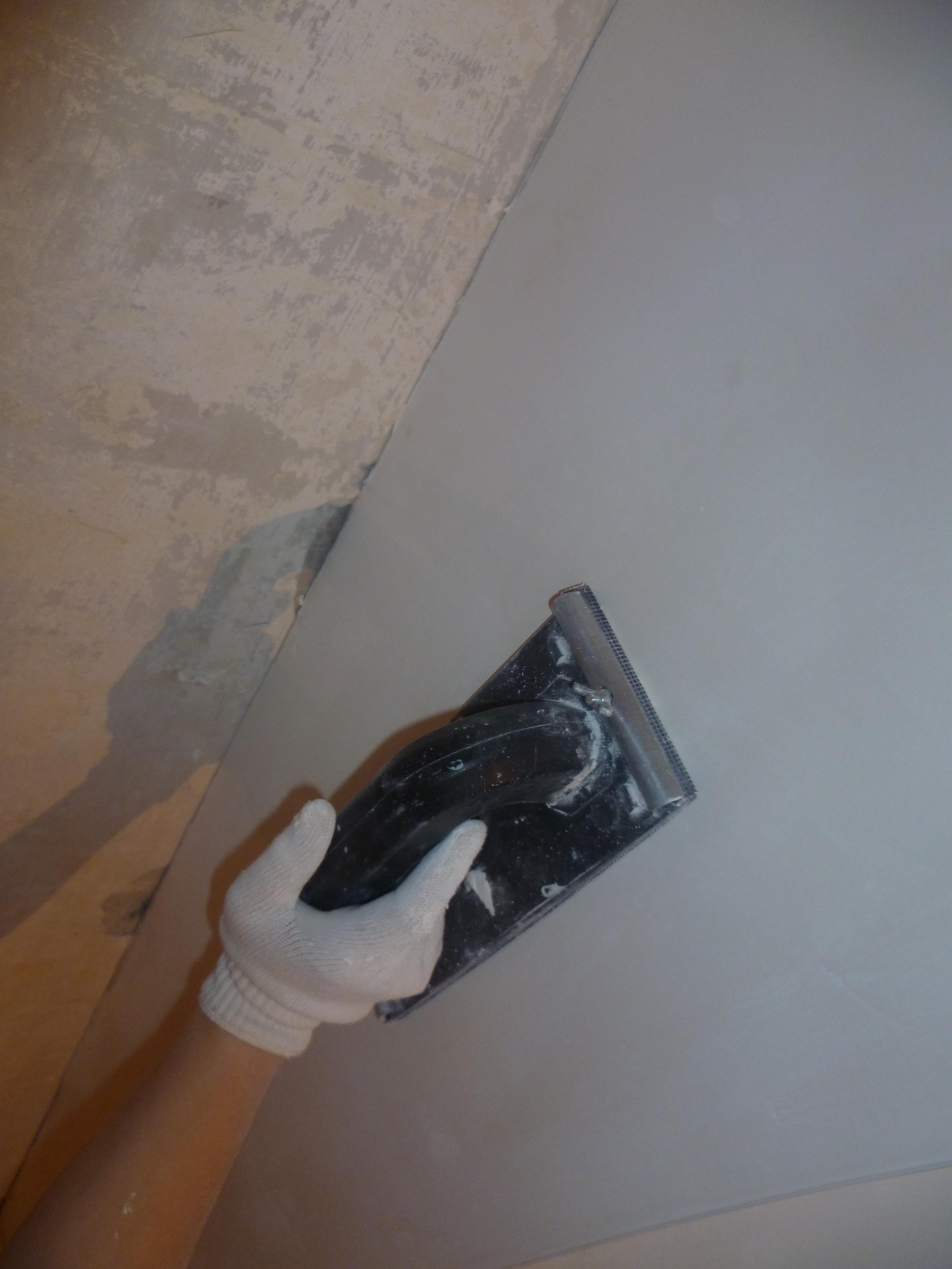 | Broyer les murs avec une râpe à main avec une grille de ponçage ou un broyeur (voir Comment broyer les murs après le mastic et comment le faire correctement) Cette opération est effectuée sous une lumière vive, idéalement incidente sur la surface du mur à un angle oblique. Il vous sera donc plus difficile de rater un rebord ou un creux. | |