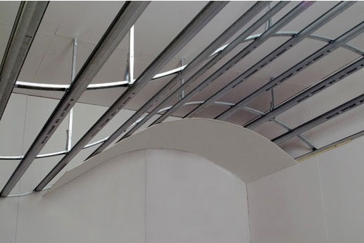 - Revêtement mural en placoplâtre Il est réalisé une fois la structure du plafond complètement prête, à l'exception de la finition. Plus en détail avec le processus de création de faux plafonds suspendus et gyroscopiques, vous pouvez trouver dans les articles sur ce sujet, qui sont également sur notre site Web.