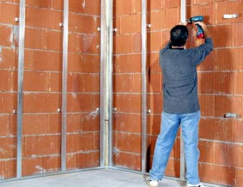 Faire face aux murs avec des cloisons sèches sur un cadre métallique commence par la fabrication du cadre lui-même en surface.