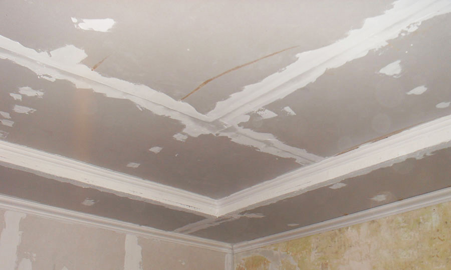 Sur toute la surface, les plaques de plâtre à peindre sont masticées avec le même mastic de gypse.