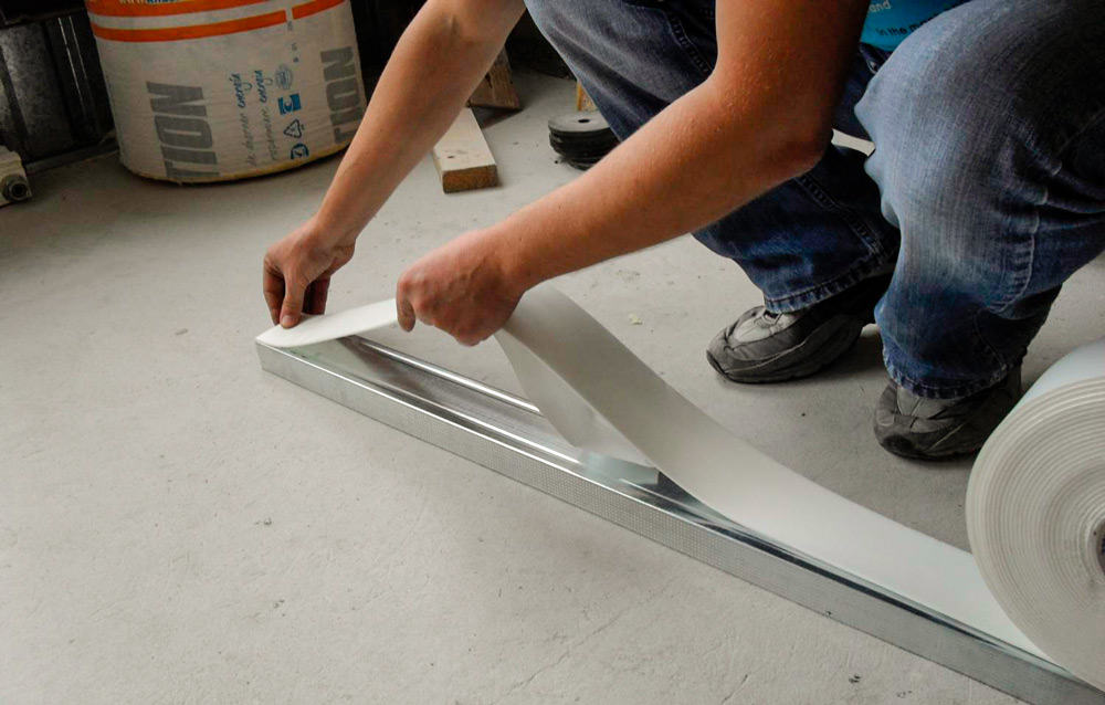 - Nous fixons les guides selon le marquage, après avoir collé le ruban amortisseur à l'arrière du profilé. Étape de montage - pas plus d'un demi-mètre;