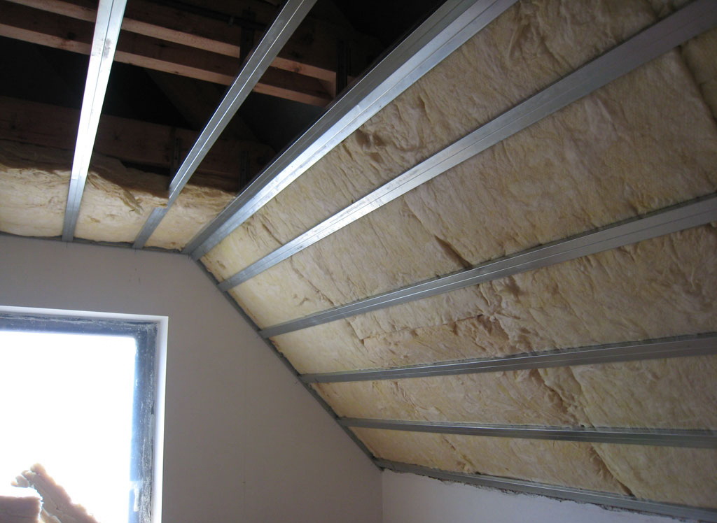 | Isolation - plaques collées en laine minérale ou en verre de 600 mm de large. Une telle largeur permettra à l'isolation d'être insérée dans les espaces entre les poteaux sans espace. | |