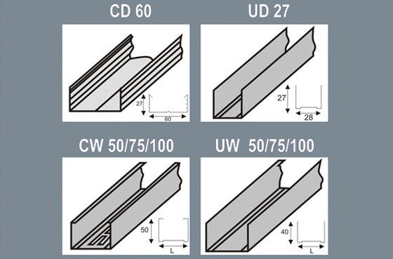 - Ces profils peuvent également être utilisés comme cavaliers entre les racks, qui sont utilisés lors de l'installation des cadres de porte dans les cloisons.