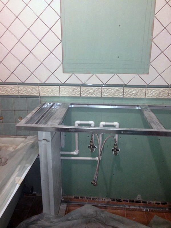 - Garde-corps de salle de bain ou murs d'âme - à partir de cloisons sèches à haute résistance à l'humidité;