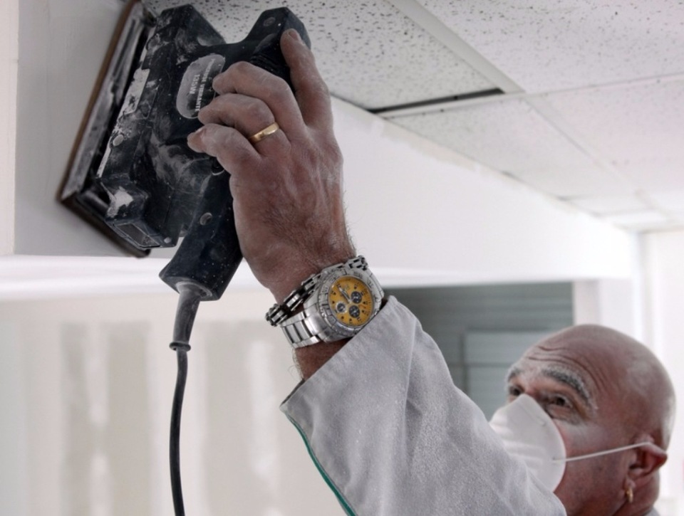 - Le mur est poli dans une lumière oblique brillante. L'éclairage vous permettra de voir les moindres défauts de mastic. Pour le travail, vous pouvez utiliser une râpe à main, une vibration ou une meuleuse à disque;