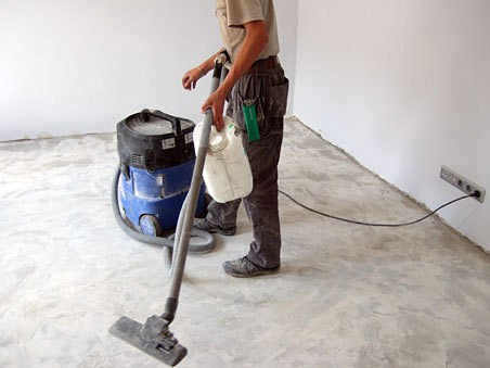 Immédiatement après cela, jusqu'à ce que la poussière retombe sur la surface, un apprêt est appliqué avant de verser ou autre Finitions de plancher. En règle générale, cela se fait en deux à trois doses, selon le degré d'absorption de la base. De plus, pour la première couche, l'apprêt est dilué pour pénétrer dans tous les pores et microfissures.