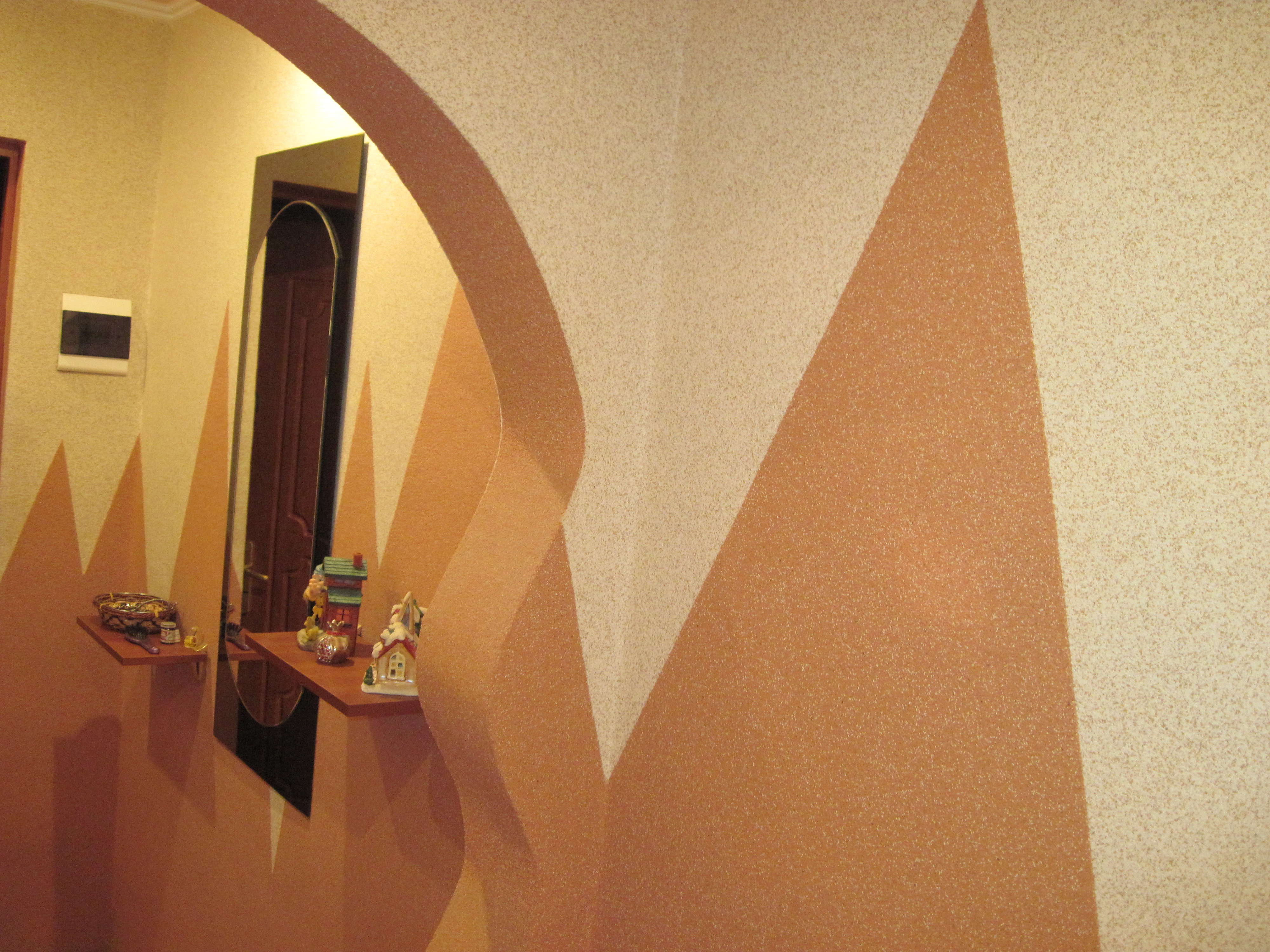 Pour donner aux murs une texture et une couleur différentes, des miettes peuvent être incluses dans le revêtement décoratif: