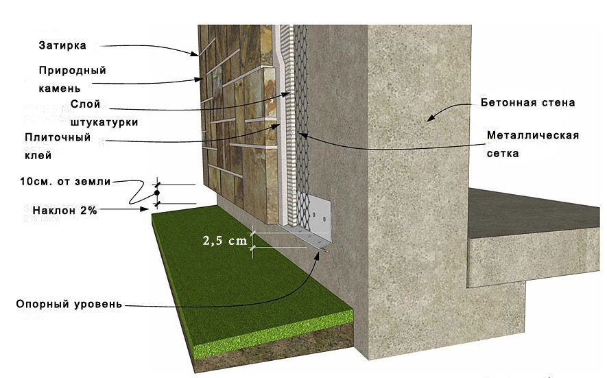 - La finition de la pierre sauvage est réalisée à l'aide d'une colle spéciale, qui assure une adhérence fiable de la pierre au mur.