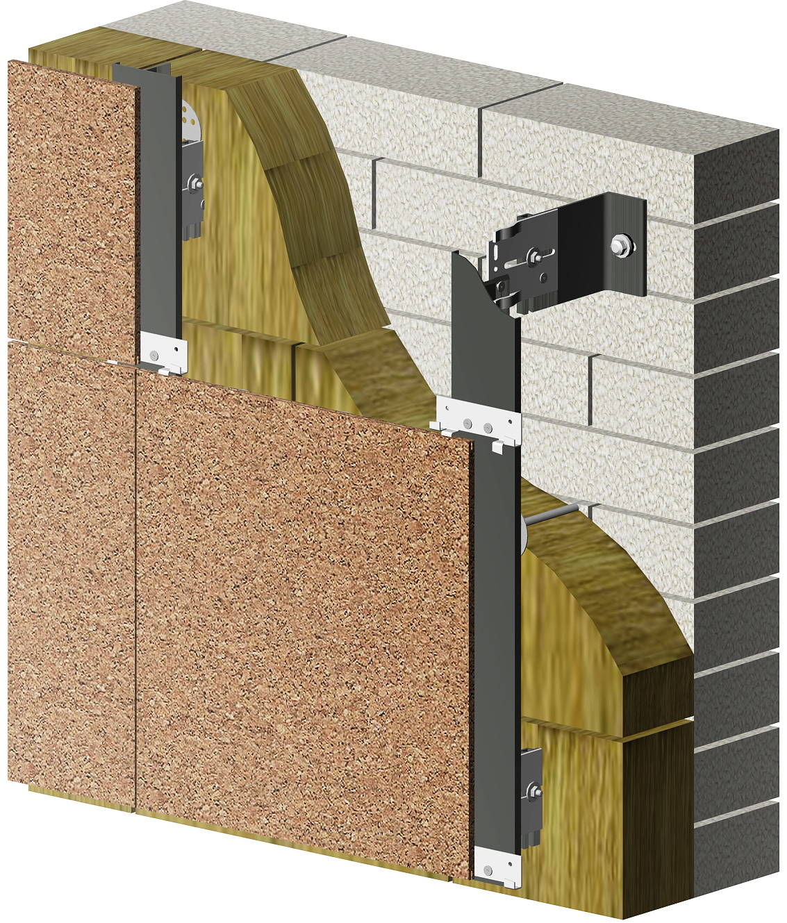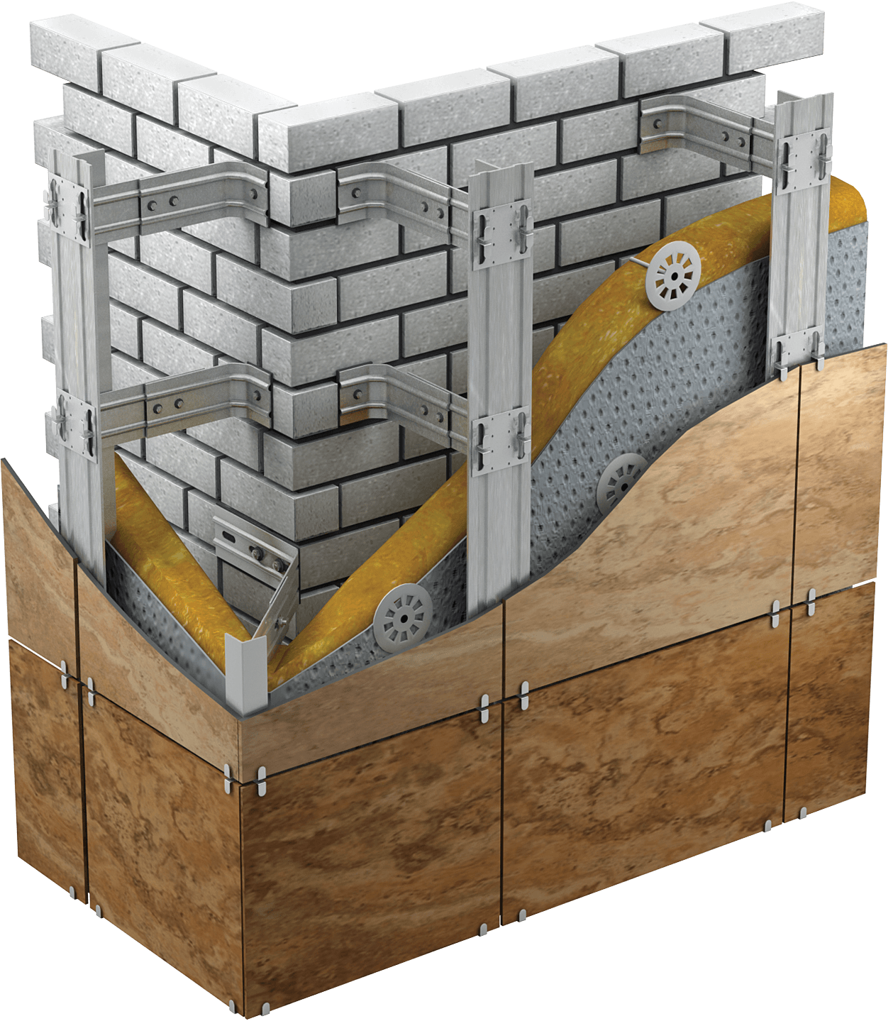 Ce système de revêtement en granit céramique est utilisé lorsque le poids et la taille du matériau sont importants. Un autre de ses avantages sera les lacunes de ventilation dans le processus de finition, qui contribuent à un bon échange d'air de la structure.
