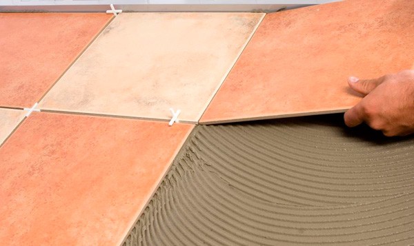 Pose de carreaux de porcelaine sur colle ou mortier de béton