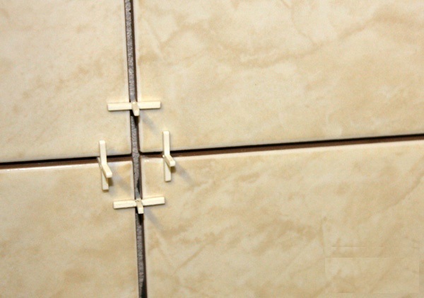 - Pour respecter la maçonnerie, la couture est déterminée à l'aide de croix en plastique. Ensuite, la couture sera uniforme.