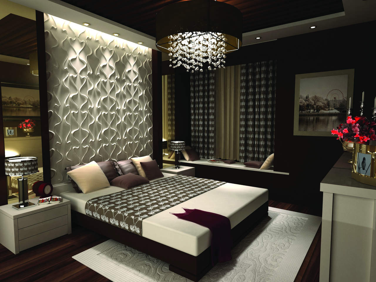 Et, disons, dans le style de la Provence, les panneaux sont plus susceptibles d'utiliser du blanc. En même temps, ils s'intègrent parfaitement même à l'intérieur de la chambre - ce que nous voyons sur la photo ci-dessus. - Les panneaux classiques peuvent être carrés et rectangulaires, mais ont une structure spéciale qui distingue ce matériau des autres. Le détail est le suivant: le panneau a un cadre; bouclier central; disposition ainsi que la corniche, la base et les éléments qui les relient. Les dimensions des panneaux peuvent varier, mais elles sont en moyenne de 1000 * 400 mm.