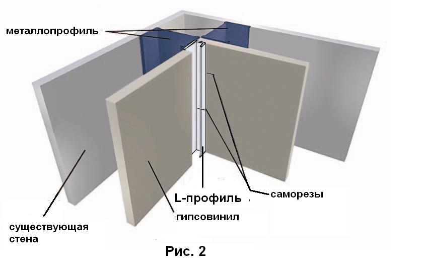 - Une fois la caisse installée, vous pouvez procéder à l'installation des bandes de départ et d'arrivée. Le profil en L fait parfaitement face à cette tâche, mais si à la fin de la doublure il est prévu d'installer des plinthes patch, au sol et au plafond, vous n'avez pas besoin d'installer un coin à ces endroits.