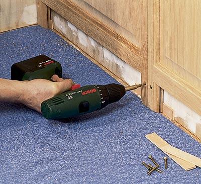 - La fixation des panneaux de panneaux en bois se fait également à travers, mais les emplacements de fixation sont ensuite cachés par des plinthes, des superpositions et des corniches.