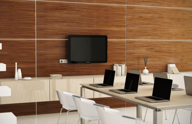 Panneaux en bois pour revêtement mural et les plafonds sont fabriqués à partir de variétés de bois de valeur telles que le chêne, l'aulne, le cèdre, la cerise, l'érable, l'acajou, etc. Ils finissent les couloirs, les armoires, les salons et si le panneau est recouvert d'une cire hydrofuge spéciale de tous les côtés, il peut également être utilisé pour faire face à des pièces très humides.
