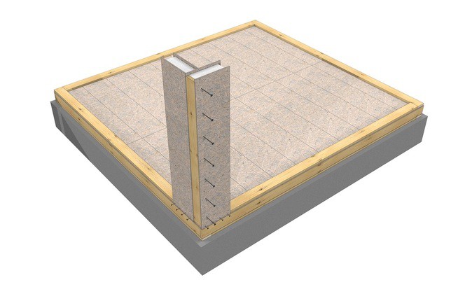 - Tout d'abord, le sous-sol est attaché avec une barre de crâne. Il sert de support aux éléments de plancher, qui sont également des panneaux sandwich, seulement plus épais et plus durables que ceux du mur.