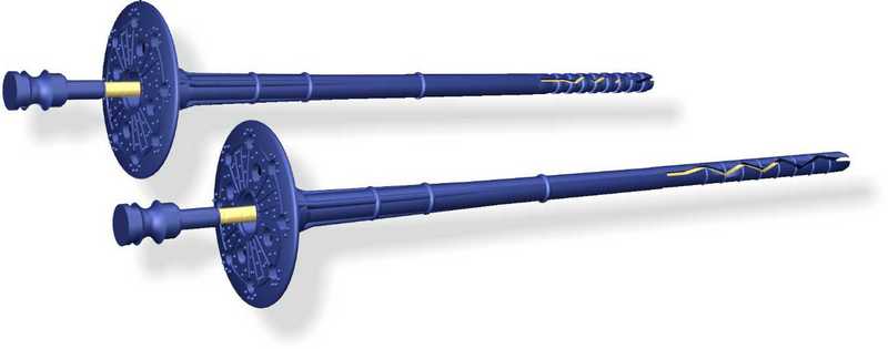 - Montez-les avec support sur la barre de guidage, sur une colle à carrelage spéciale, qui doit être appliquée avec précision: le long du périmètre et au centre. Ensuite, les panneaux sont en plus fixés: en trois endroits de chaque côté, avec de tels chevilles de façade 10 * 120 mm, comme sur la photo. Ces chevilles sont conçues pour une installation au mur, et la fixation à la caisse est réalisée avec des vis autotaraudeuses 4 * 70 mm.