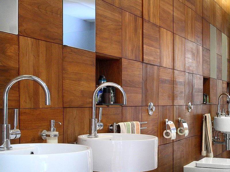 - Panneau en bois - sur le mur de la salle de bain