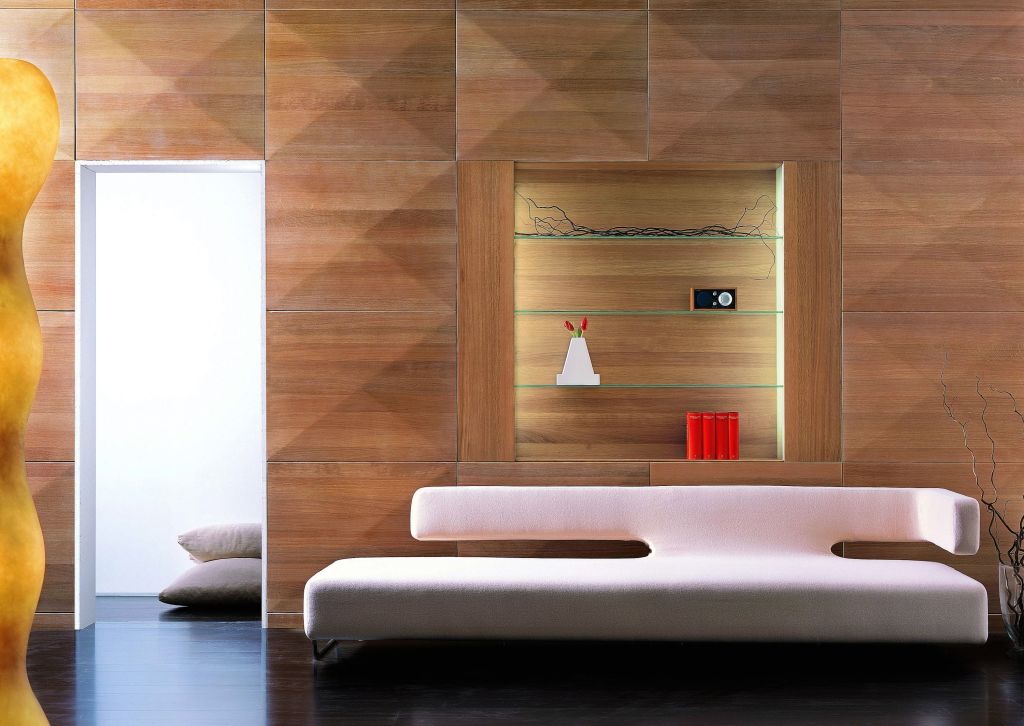 Les boisiers peuvent servir non seulement de tissu pour la porte intérieure, mais aussi pour les armoires encastrées. En fait, par conséquent, les panneaux pour murs en bois sont souvent fabriqués par des fabricants de meubles d'armoires.