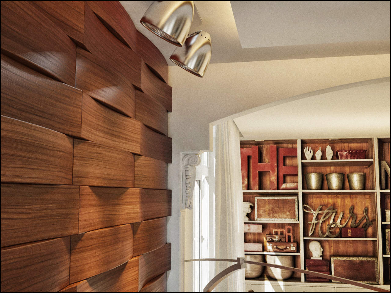 Conseil! Ce type de panneaux muraux est utilisé dans des pièces assez spacieuses, car leur configuration volumétrique et leur installation masquent la zone de la pièce.