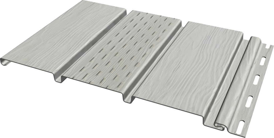 | Les soffites sont utilisés pour limer les surplombs de toit. Ils ont une perforation qui assure une bonne ventilation et une bonne évacuation des condensats. | |