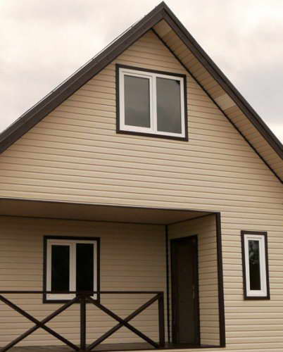 Finition de la façade d'une maison en bois il est nécessaire de protéger les murs porteurs de la maison contre les intempéries.Une des méthodes de revêtement de façade est de la revêtir d'une doublure en bois.